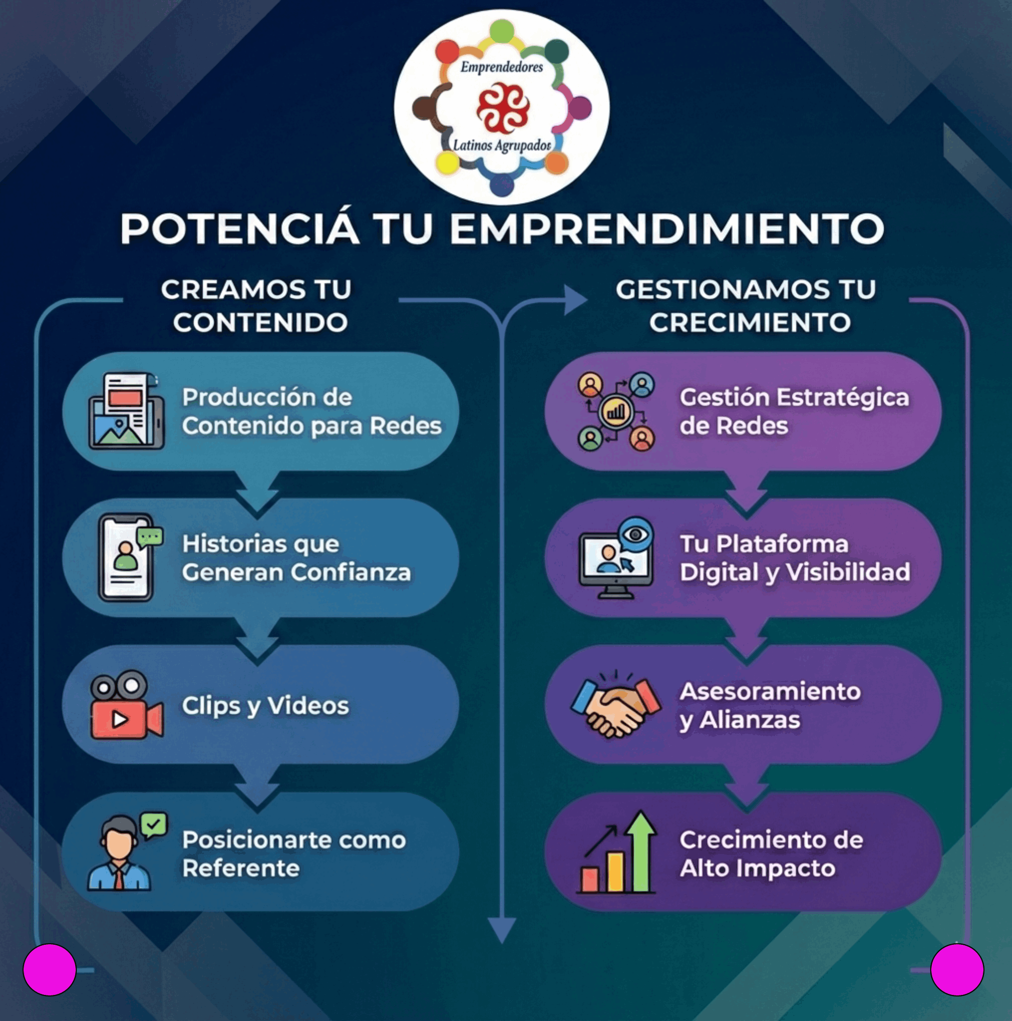 Nuestro objetivo es apoyar a los emprendedores latinos en el desarrollo de sus negocios y en la búsqueda de recursos y oportunidades de crecimiento.